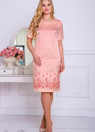 Облик настоящей леди должен завораживать и покорять. Помочь в этом нашим прекрасным покупательницам призвано платье из новой коллекции интернет- магазина ТМ ST SEVENTEEN . Уникальная дизайнерская разработка VIP-класса включает дивный стрейчевый атлас нежного персикового цвета высочайшего качества, оригинальную вышивку цветами по краю изделия темно-красного цвета и универсальный крой с длиной ниже колена и рукавами, прикрывающими плечи. Эксклюзивная модель платья умело скрывает недостатки фигуры и подчеркивает ее достоинства, делая женщину еще более нежной, очаровательной и соблазнительной. В этом великолепном платье Вы почувствуете себя настоящей волшебницей, способной творить чудеса! Недорогая цена на опт и розницу делает покупку этого чудесного платья еще более приятной, а возможность сделать заказ не выходя из дому существенно сэкономит время. Доставка платьев большого размеры по Украине, другим странам осуществляется в максимально кратчайшие сроки.