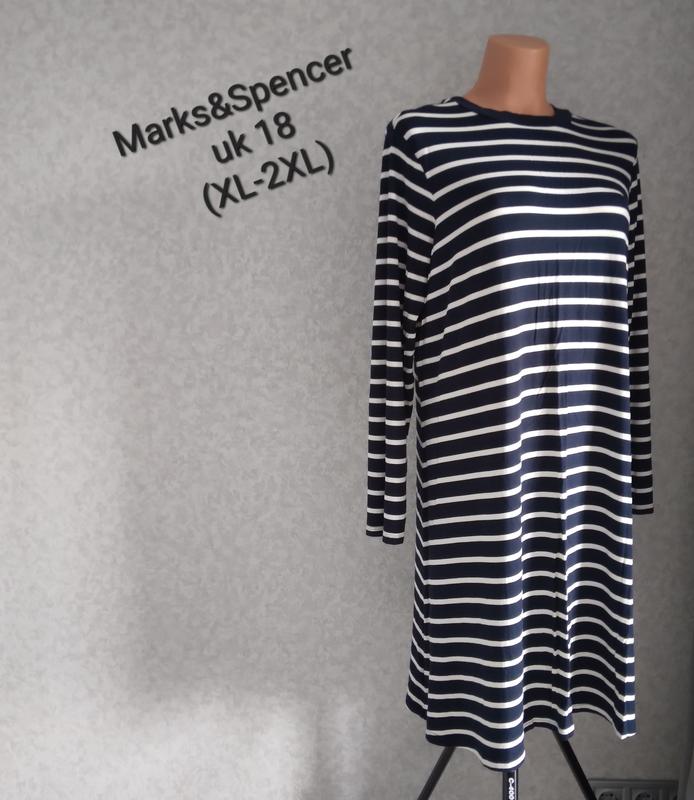 * Marks&Spencer * чудова сукня з довгими рукавами * A силует * віскоза 95%. еластан 5% * розмір uk 18 але прекрасно сяде і на менші розміри uk 14-16 Довжина сукні 96-97 см Плечі 39-40 Підпахви 58-59 Талія 55-56 Стегна 63-64 Поділ 78-79 Довжина рукава 59 Тканина гарно тягнеться.