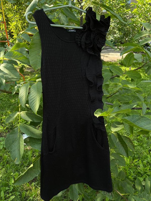 гарна фактурна сукня с цікавим плечем з імітацією квітів має дві бокові кишені пот 33см пог 37см довжина 93см