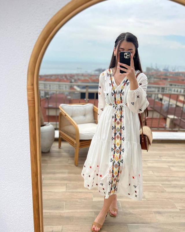 Платье вышиванка вышивка рубашка длинная свободная оверсайз миди белая молочная туреченица