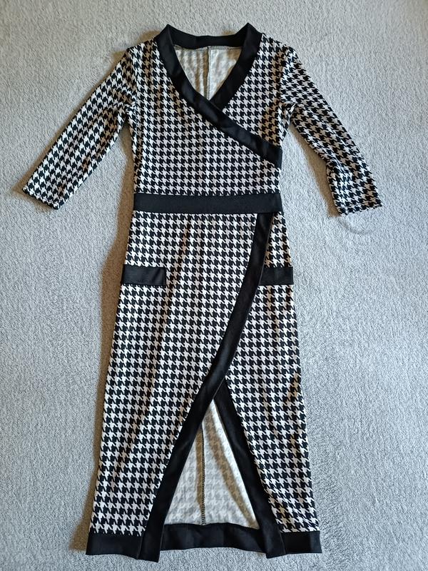 Платье в гусиную лапку по фигуре с разрезом по ноге
