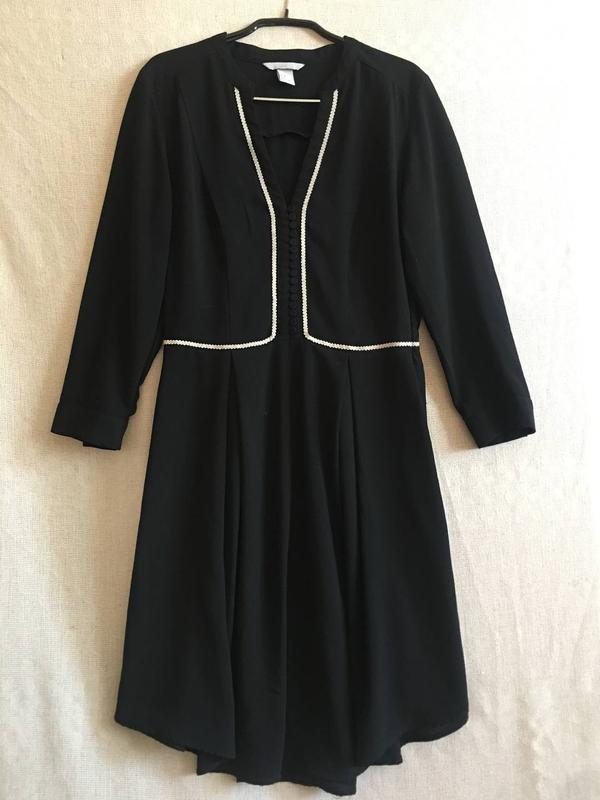 Цвет черный с деликатной белой отделкой Ткань с легсенней прозрачностью, но за счет складок просвечивания отсутствует Силуэт приталенный с расширением к низу Крой отрезной по линии талии Юбка с асимметричным низом По линии талии глубокие мягкие складки Застежка на молнию в боковом шве Длина 98 см длина до талии 40 см плечи 38 см длина рукава с манжетой 49 см ПОГ 46 см ПОТ 37 см ПОБ 80 см ПО низу 120 см