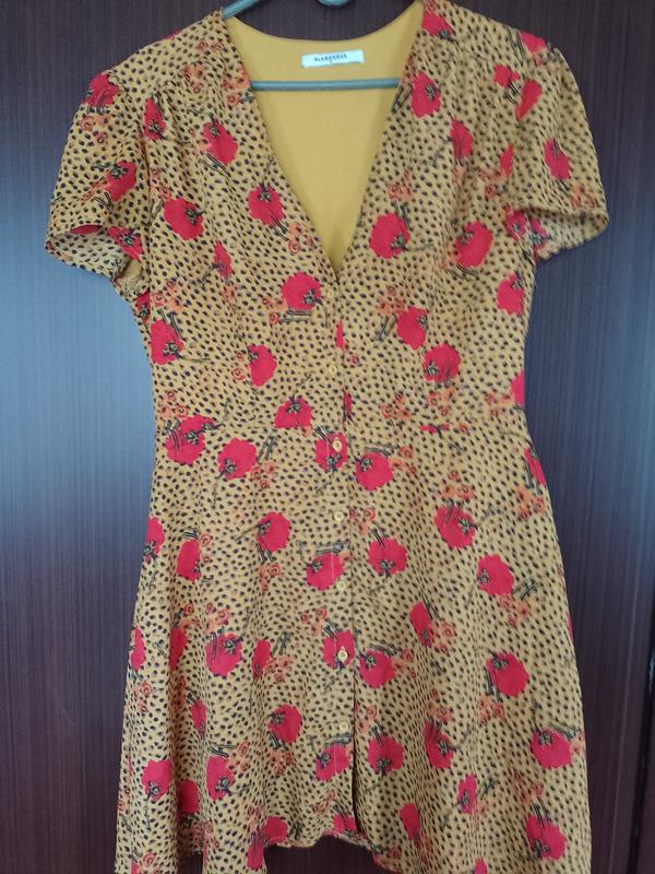 Шифоновое красивое платье на пуговицах. Замеры: плечи 40, НГ 47см, НТ 39 см, длина спереди 78 см, сзади 83 см.