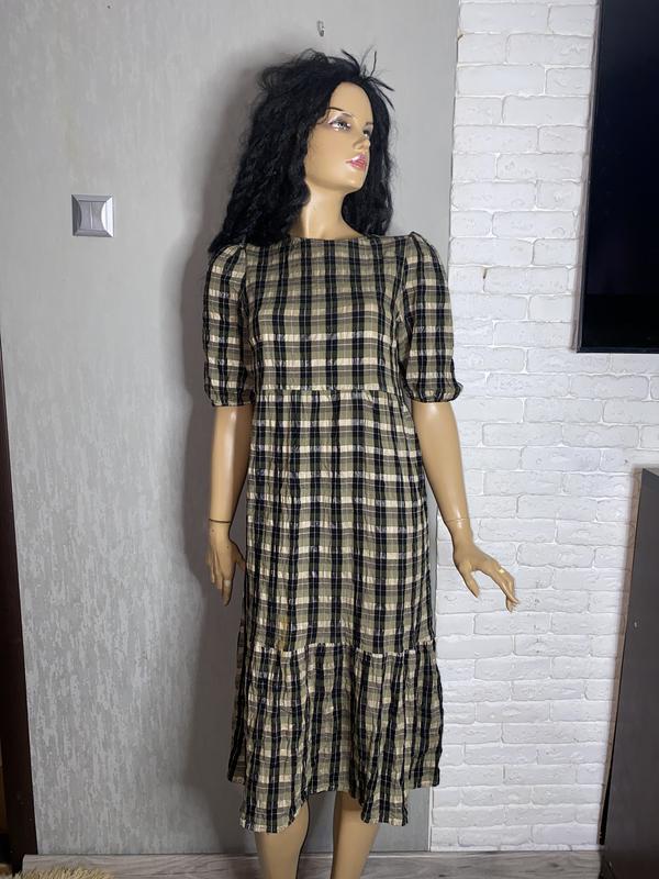 Ярусное платье миди платья в клетку Primark, XS. Длина 107см, ПОг 44-48см, ПОт 43см, ПОБ 56см