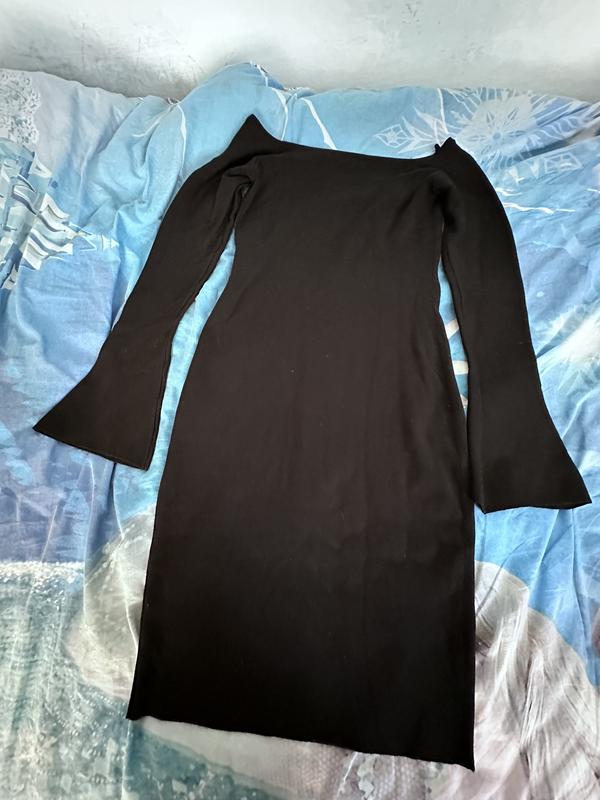 Новое трикотажное; хлопковое) Платье. Цена нового 2800, размер M. Хорошо тянется, с рукавами клеш. Возможен торг. Тележка/нейлон. Красиво садится по фигуре. Цвет насыщенный черный.