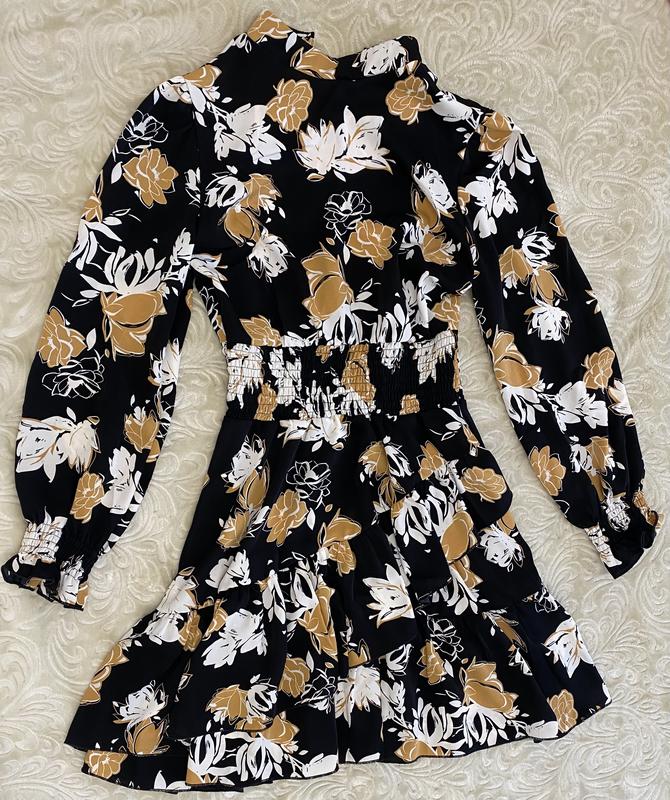 Заміри: Довжина виробу 93 см Обхват грудей 88 см Обхват талії 68 см ( на резинці, тягнеться) Рукав від плеча 62 см ( манжет рукава на резинці) На шиї ззаду на ґудзиках. Сукня в новому стані, на бірці вказаний розмір S-L Ідеально підійде для корпоративів, свят) ☺️