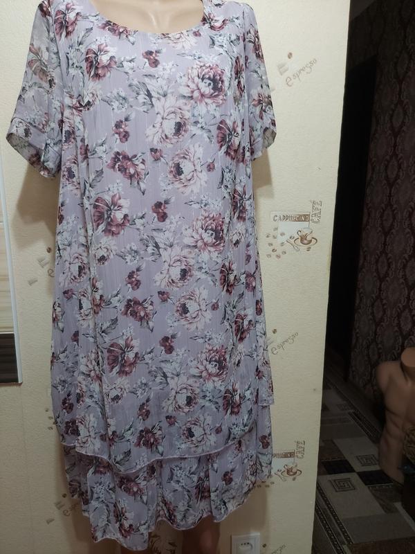 Платье большого размера, цвет - лаванда, на подкладке, нежный цветочный принт. Замеры по запросу.