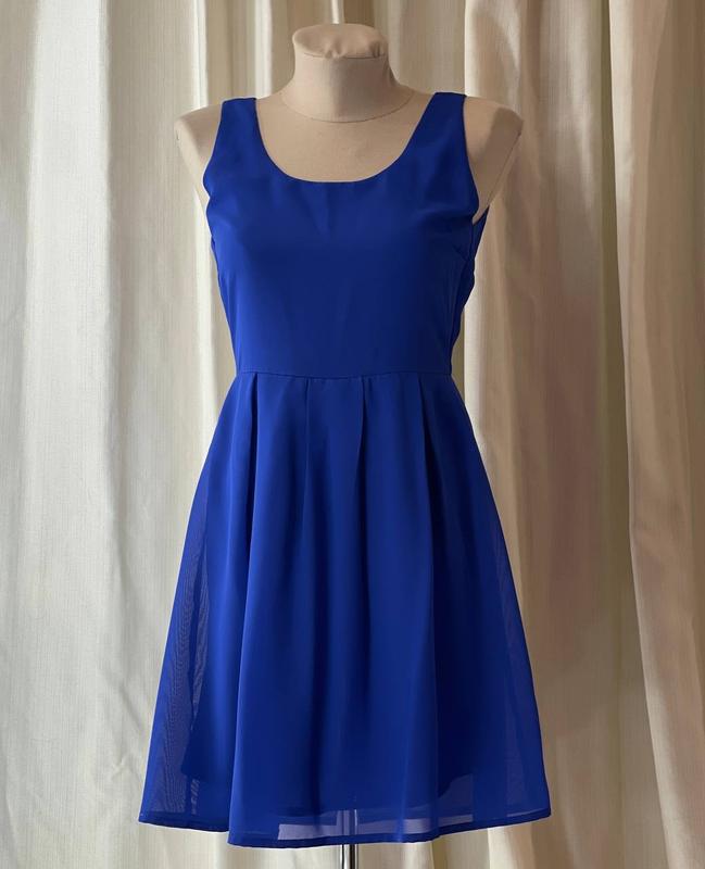 Сукня з шифону синього кольору RUT&CIRCLE🛍️❤️🔥🥰🥰🥰 Розмір - UK 8/ EUE 36/ S / 42-44. Склад : 100% поліестер. Виробник Китай. Сукня з шифону, відрізна по талії з вставкою резинки ззаду. Спина з вирізом . Круглий виріз шиї. Від талії вниз складками. На еластичній підкладці. Додаткові заміри: повна довжина 88 см, довжина від плеча до талії 38 см, довжина від талії вниз 50 см, ширина плечей 36 см, напівобхват грудей 43 см ( повний обхват 86 см), напівобхват талії 35 см ( повний обхват 70 см) і потягнеться до 80 см, напівобхват стегон 60 см ( повний обхват 120 см) .