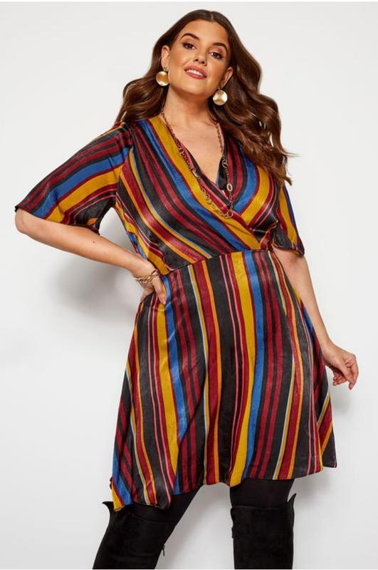 Красивая расцветка, полоса Ткань приятная к телу Длина по спинке 102 см Объем груди от бокового шва до шва бокового 58 см( 116 см) По талии 110 см без натяжки( на резинке)