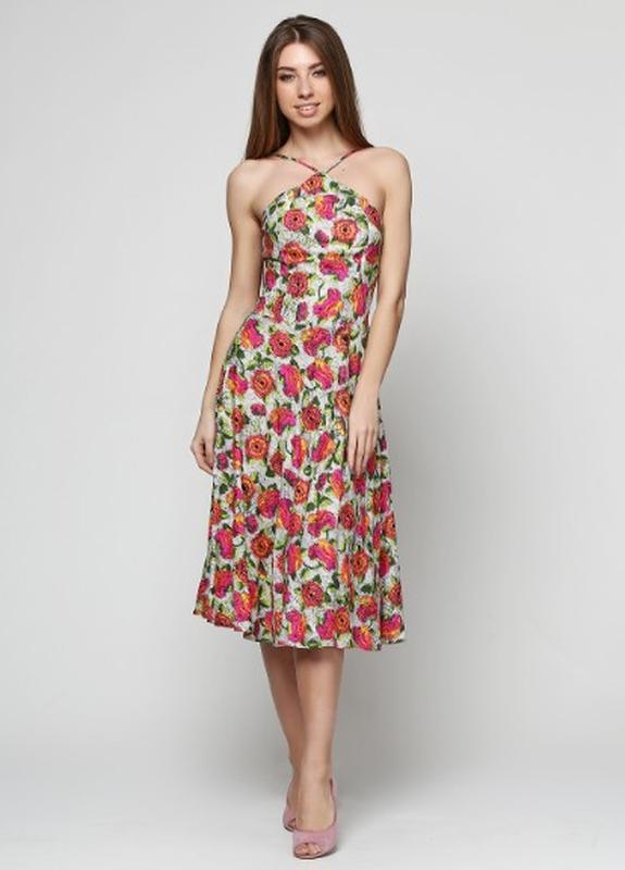 літній яскравий сарафан із тонкими бретелями, довжина — міді, матеріал — 100% бавовна в наявності розміри — 44