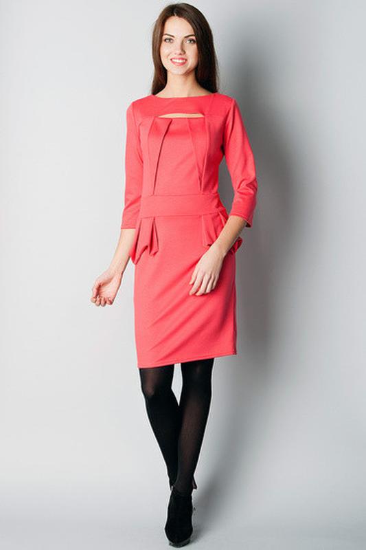 Трикотажное платье с баской цвета "коралл" материал - французский трикотаж в наличии размеры - 46