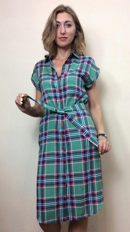 Стильная рубашка-платье длиной по колено. Воротник рубашечный, рукав японка с отворотом, застежка на пуговицы (планка), по бокам закругленная. В комплекте пояс. Материал: штапель. В наличии размеры - 44, 46