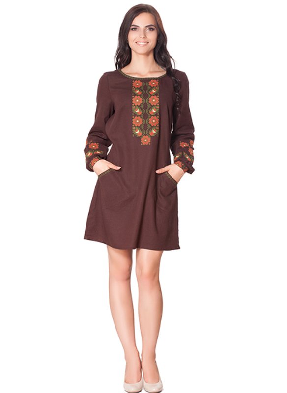 Сукня льон віскоза високої якості з вишивкою довгий рукав україна вв136