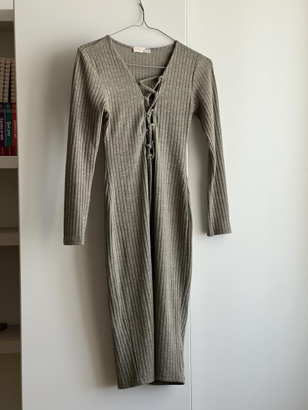 Сукня по довжині закриває коліна, дуже гарно підкреслює фігуру. Ідеальний варіант на осінь