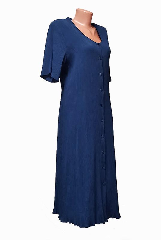 РАЗГРУЖАЮ домашний гардероб. Покупайте обдуманно - возврата, обмена, наложенного платежа и безопасной оплаты нет. Базовое платье-халат миди размер 40-42 смотрите замеры, состояние очень хорошее без дефектов. В пару местах есть блеск от утюга (поэтому надо гладить с изнанки), в цене учтено. Состав 60% вискоза 40% полиэстер Фактура ткани жатая Цвет темно-синий Застежка на пуговицы есть запасная, сзади тонкие завязки Ширина плеч - 43 см (есть подплечники) ПОГ - 49 см + ПОТ - 46 см +- ПОБ - 57 см +- Ширина низа - 71 см Длина рукава - 26 см Длина платья - 112 см Измерения сделаны в разложенном и застегнутом виде спокойном состоянии плюс ткань тянется.