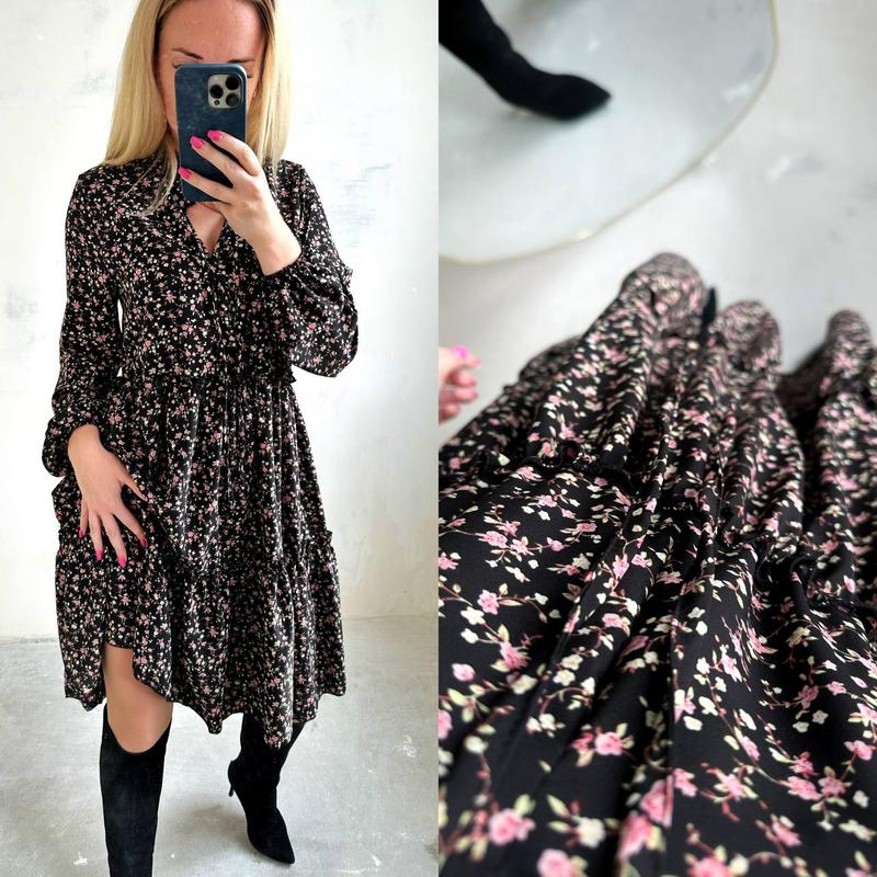 Сукня Модель 018 Kfn Розміри: 42-44,46-48,50-52 Тканина: шовковий софт Колір: темний синій в білий горошок, молочні квіти , чорні квіти , чорний горошок ✔️Плаття в стилі оверсайз, вільного крою, комір стійка ✅ Ціна 725грн Vas