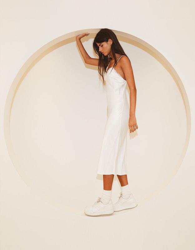 Оригинальный В наличии размер XS 100% вискоза Пог 42 по спинке резинка Талия свободно ниспадающая ткань Бедра 48 + Довдина рег бретелями 124