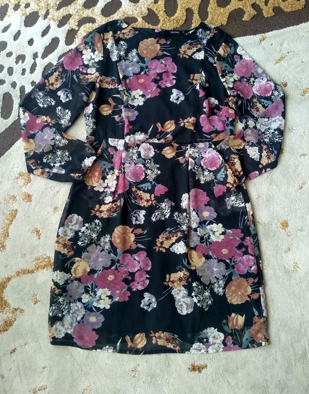Надзвичайно красива шифонова сукня. По бокам карманы, рукава прозрачные, сзади замок, на подкладке. Замеры: длин 100, пог 52 + вытачки, пот 44, поб по подкладке 56+, по верху 60, рукав 66, плечи 41.