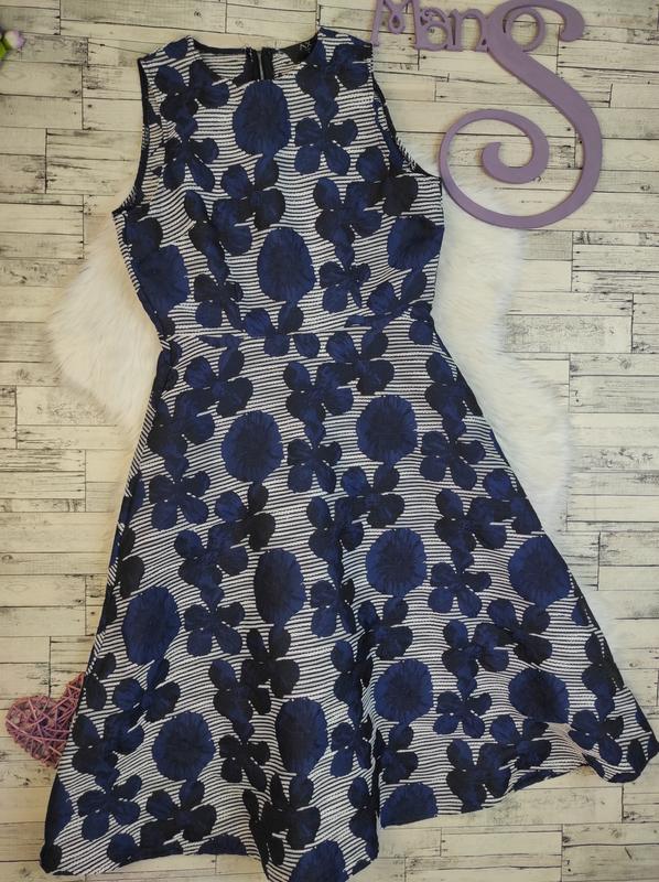 Женское платье ax синее в полоску с цветочным принтом миди с карманами размер s 44