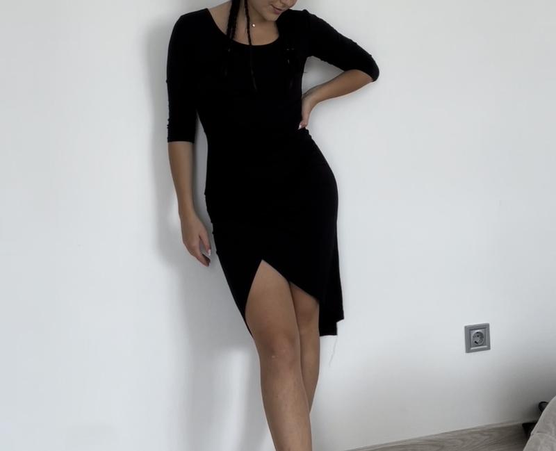 Черное платье по фигуре. Ткань простая, тянется, приятное к телу