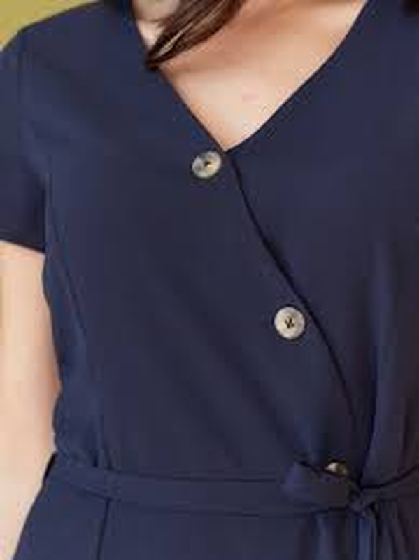 Стильное, комфортное темно - синее платье на подкладке. Имеет съемный поясок. Цвет - темный (5 фото) ПОГ 49, ПОТ 45, ПОБ 57, длина от плеча 102, рукав 15. 97% поліестер, 3% еластан