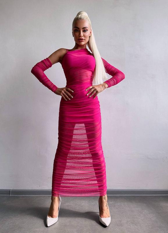 Платье миди с драпировкой ▫️ткань: сетка, трикотажная подкладка ▫️размер: S и М