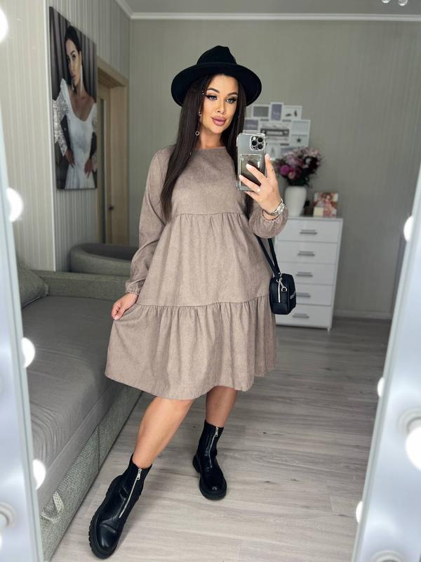 Отличное свободное вельветовое платье💓 Современный крой из трендовой ткани поможет вам быть в тренде🔝 ▪️Модель с завышенной талией и свободной двухъярусной юбкой ▪️Рукава длинные, снизу на резинке Мод: 190InS 💵Цена: 800 грн Размеры: 50-52, 54-56, 58-60 Цвета: черный, бордо, джинс, мокко Ткань: микровельвет на хлопковой основе Замеры выполнены по груди с учетом вытачки!! • 50-52: ОГ 106-108 см ОБ 128 см • 54-56: ОГ 116-120 см ОБ 138 см • 58-60: ОГ 120-124 см ОБ 150 см Длина платья 100-103 см Длина рукава 68 см от горловины. Наложенный платеж по перед оплате 150 грн