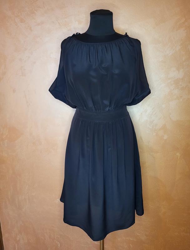 Брендова шовкова сукня,дуже легенька,верх регулюється зав'язками,об'ємна пашка в платтячку,дуже гарно виглядає. Заміри запитуйте.