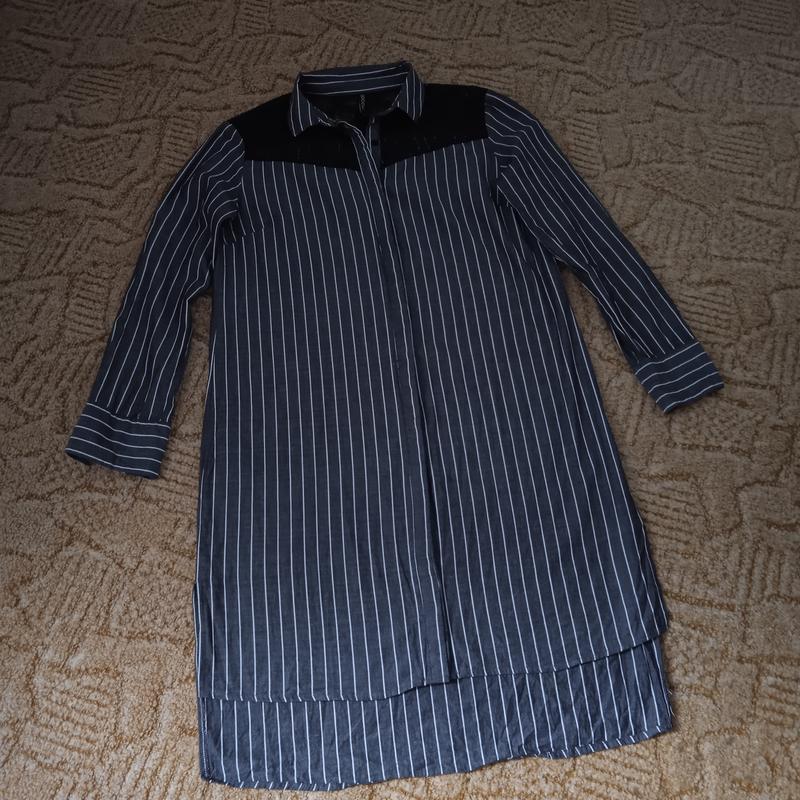 телефон не передает так, как в живую выглядит зверху красиве кружево практичное, комфортное и нарядное к телу приятная ткань сочетание цветов красивое длина ззади 104 см длина спереди 92 см объем груди 104 см объем бедер 110 см длина рукава от горловины 73 см