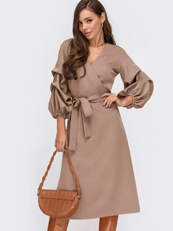 🍂Однотонное платье на запах из костюмной ткани. Объемные рукава с защелками и эластичным манжетом. Запах фиксируется вшитым поясом. ✔Размер:46,48,50 🪡длина изделия – 118 см 🪡длина рукава (от плечевого шва) – 43 см 🧵Состав: 65% вискоза, 30% полиэстер, 5% эластан 🌈Цвет: бежевый 🧵Материал: Костюмный креп 💳Цена 1490грн Арт 43737 ‼️Для заказа и детальной информации ndем в дырэкт📩, или комментарии ⤵️