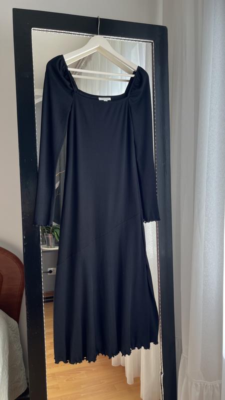 Красивое платье в рубчик, снизу есть разрез с одной стороны