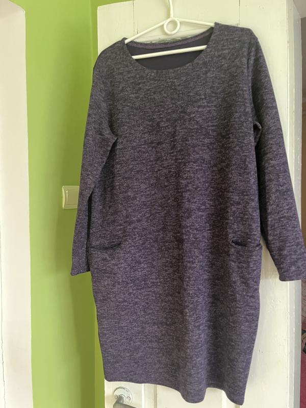 Теплое платье украинского производства, цвет темно-фиолетовый, есть кармашки. Замеры: ПОГ-56, ПОТ-55, ПОБ-58, длина 94 см. Состояние нового