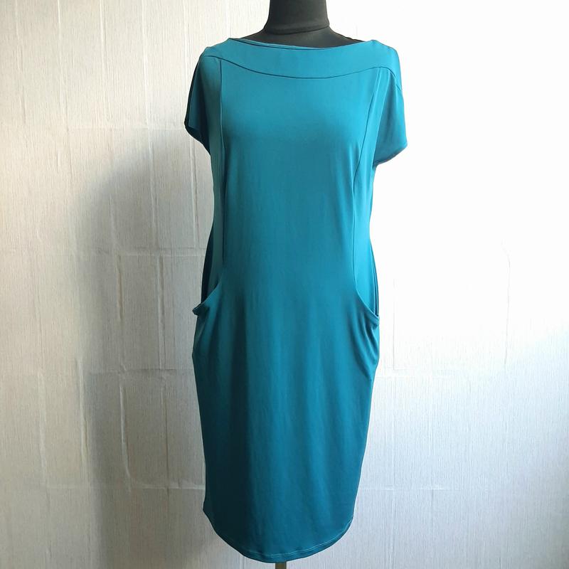 Дуже гарна та зручна сукня кольору морської хвилі Поліестер з еластаном тоненький та м'якенький трикотаж Має кишені добре тягнеться довжина 97см ПОГ 48см, ПОТ 46см, ПОС 51см