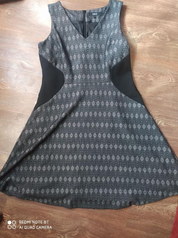Стильное платье Next,верх-хлотный трикотаж,низу-плащевка. Юбка не прямая, по бокам черные вставки, которые корректируют фигуру.Замеры : длина 98 см, полуобхват груди -49 см полуобхват пояса -45 см.Стан вещи отлично подходят,без нюансов. Переда.