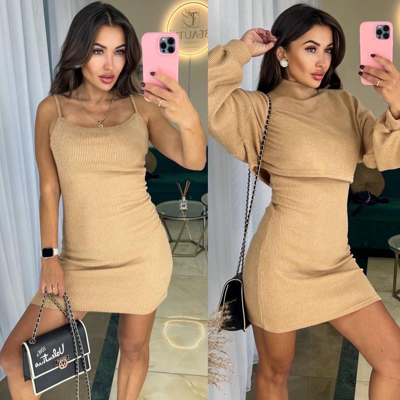 💥 Хит💥 Фото реал😍 🌿Сукня+светр Модель: 022 Размеры: 42-46. Ткань: Качественная Ангора рубчик Турция Цвета: Черный, Молоко, Кэмел. Платье на бретелях