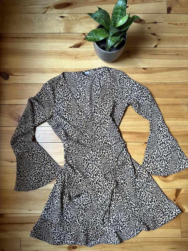 Невероятное платье на запах с клешными рукавами стильный леопардовый принт но без бирки не подошел размер