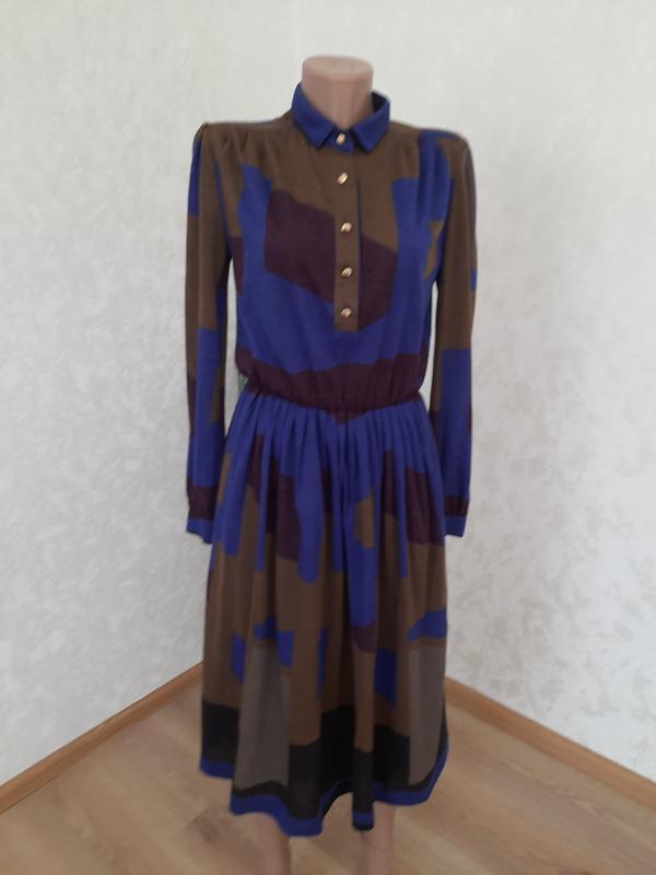 Шикарное винтажное платье в актуальных цветах. На ацетатной подкладке. Красивые золотистые пуговицы. По пояску гумка. Замеры: ПП 41 ПГ 50 ПТ 35- 43 ПБ 53 Длина 110 Рукав 62