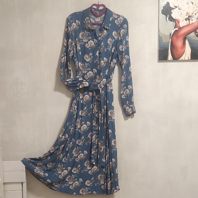 Очень нежное и женственное платье укр.бренду. Натуральная ткань, так что приятная к телу. Размер 44-46. Длина 122см, плечи 42, талия до 80, длина рукава 64, грудь до 92см.