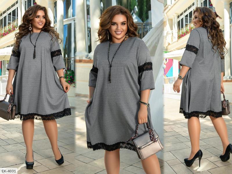 хлСукня EK-4031 1238 Размиры: 50-52, 60-64 Цвет как на фото-графит. Ткань про-во Турции: трикотаж-антора безумно мягкая и приятная на ощупь, отделка дорогостоящее кружево. Длина платья 100 см. Длина рукава 40 см. ♥️___________♥️___________♥️
