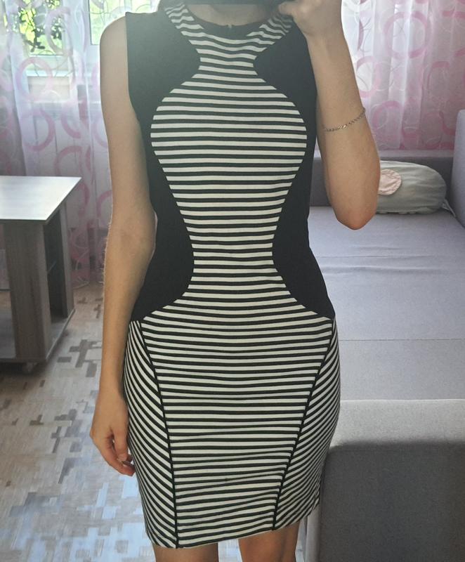 Аккуратое платье, за счет контраста и принта имитирует эффект талии и вытягивает тело, что дает +к росту :) Будет красиво смотреться как на миниатюрной так и на средней девушке, если талия 63-68 то просто супер прилегает. Надевала один раз, состояние идеальное. Если нужно то ткань тянется, при ходьбе не соскальзывает наверх, что является неприятной "фишкой" некоторых моделей.