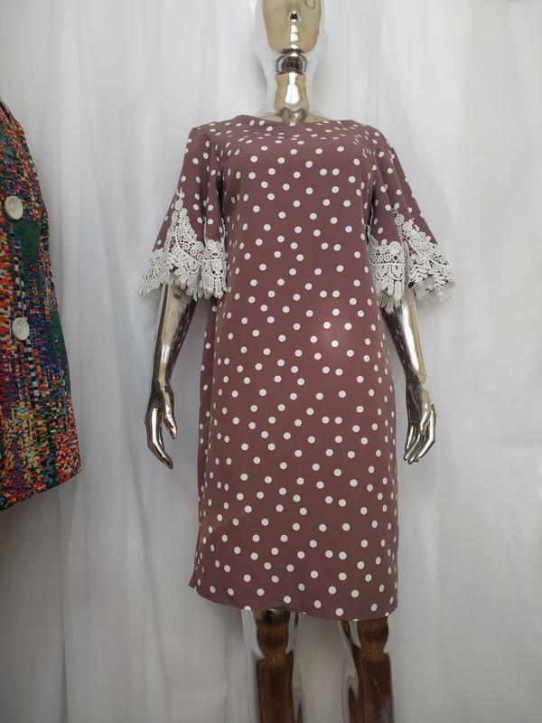 107433(23) Платье ТМ Deloras Принт горох Основной цвет какао Рукава декорированы кружевом На спине скрытая молния Сзади внизу есть разрез Размер : 38,40 ЗАМІРИ: Размер: 38 Ширина плечей: 40 см. НО грудей: 42 см. ПО талии: 36 см. НО стегон: 45 см. Длина рукава: 32 см. Длина изделия: 97 см. Размер: 40 Ширина плечей: 41 см. НО грудей: 44 см. ПО талии: 38 см. НО стегон: 47 см. Длина рукава: 32 см. Длина изделия: 97 см. Размер: 42 Ширина плечей: 42 см. НО грудей: 46 см. ПО талии: 40 см. НО стегон: 49 см. Длина рукава: 33 см. Длина изделия: 97 см.