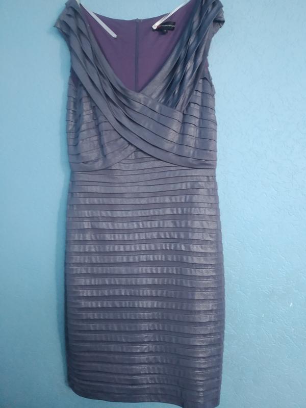 Цвет пыльный сиреневый с нежным блеском, по всему изделию складочки,трикотаж. открытое декольте и плечи. лиф на трикотажной подкладке. хорошо и плотно сидит на фигуре. Пог 51,пот 42,поб 53,ещё тянется на 3-4 см. длина от талии 65см. Golden Cattleya. Указан размер 16.