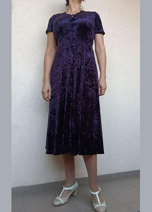 Бархатное миди- платье французского бренда Etam, состав- 100% полиэстер, через весь перед идут пуговицы, есть собственный пояс который подтягивает платье по фигуре, размер 44, на фото одетая на 46 размер, рост 165 НОП- 36 довжина - 118