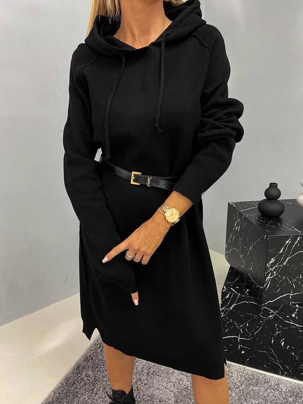 Платье худи с капюшоном длинная черная ангора