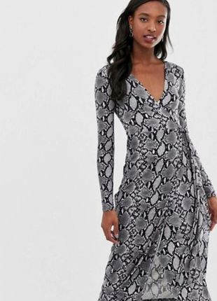 Мягкое, приятное на ощупь платье халат, серого цвета, принт питон