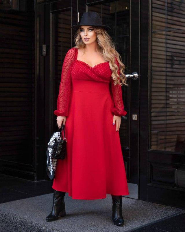 Ціна: 1140 грн. Розміри: 48-50, 52-54, 56-58 Ціна: 1290 грн. Розміри: 60-62, 64-66 Тканина: крепдайвінг, фактурна сітка Довжина міді, блискавка на спинці. Кольори: червоний еу