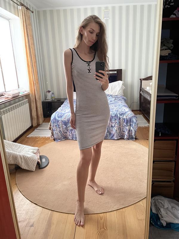 Платье в полоску, отлично впишется в ваш летний гардероб. Ткань - мелкий рубчик.