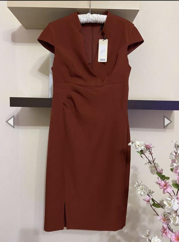 Очень красивое и дорогое платье. Бренд Lipsy London Размер указан UK12, EU 40 (L) Подойдёт на M,L. Очень красивый терракотовый цвет. Верх платья идёт на запах. Вверху на подкладке. На талии с одной стороны есть красивые сборочки. Спереди есть небольшой разрез. ЗАМЕРЫ: -длина от плеча - 102,5 см -ширина под руками в свободном положении по спинке - 44 см (полн 88 см) В груди, за счёт запаха ещё есть место для груди. Максимально тянется до 51 см (полн 102 см) -ширина в талии - 39 см (полн 78 см) Ткань тянется! -ширина в бёдрах - 49 см (полн 98 см) Ткань тянется