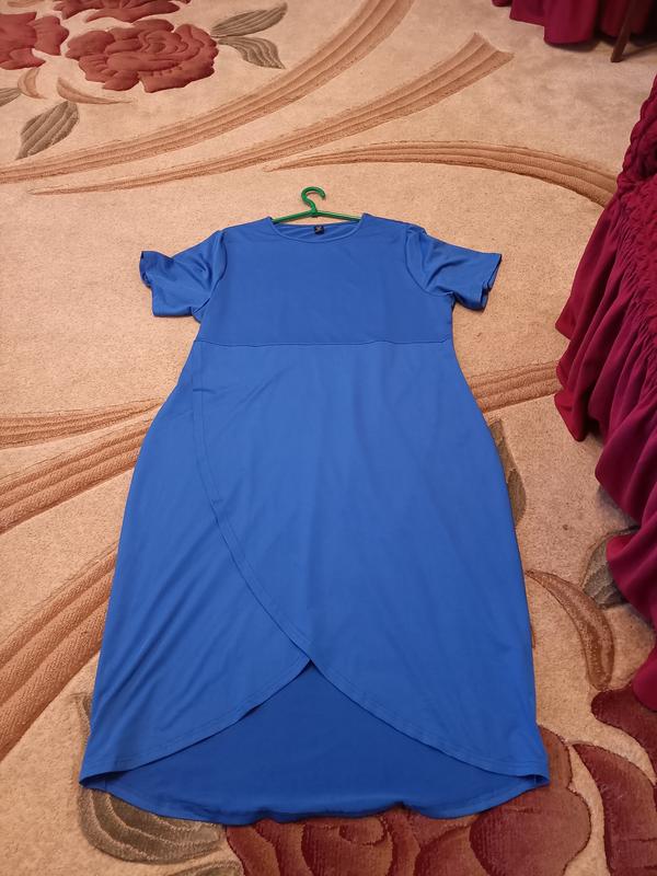 Очень красивое платье светло синего цвета. На юбке выполнена драпировка в виде запаха. Трикотаж. Состояние новой вещи, замеры длина от плеча 115 пог 65 тянется до 75 поб 72 тянется до 82. Очень красивая вещь, будете королевой.