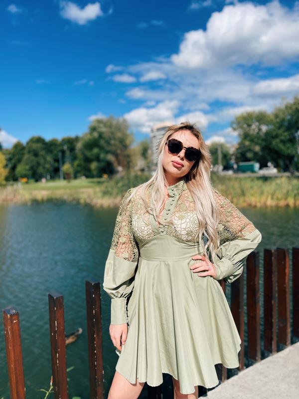 Очень красивое эффектное платье, состояние нового. На груди пуговицы, подчеркивает талию.